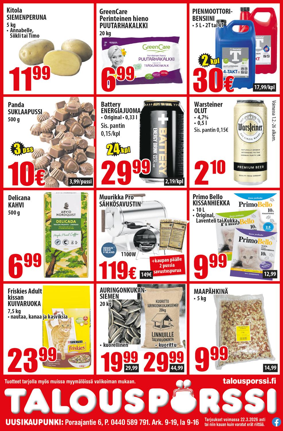 Voimassa 22.3.26 asti Halkosäkit myyty valitettavasti loppuun! Delicana kahvi myymälöissä vasta torstaina.